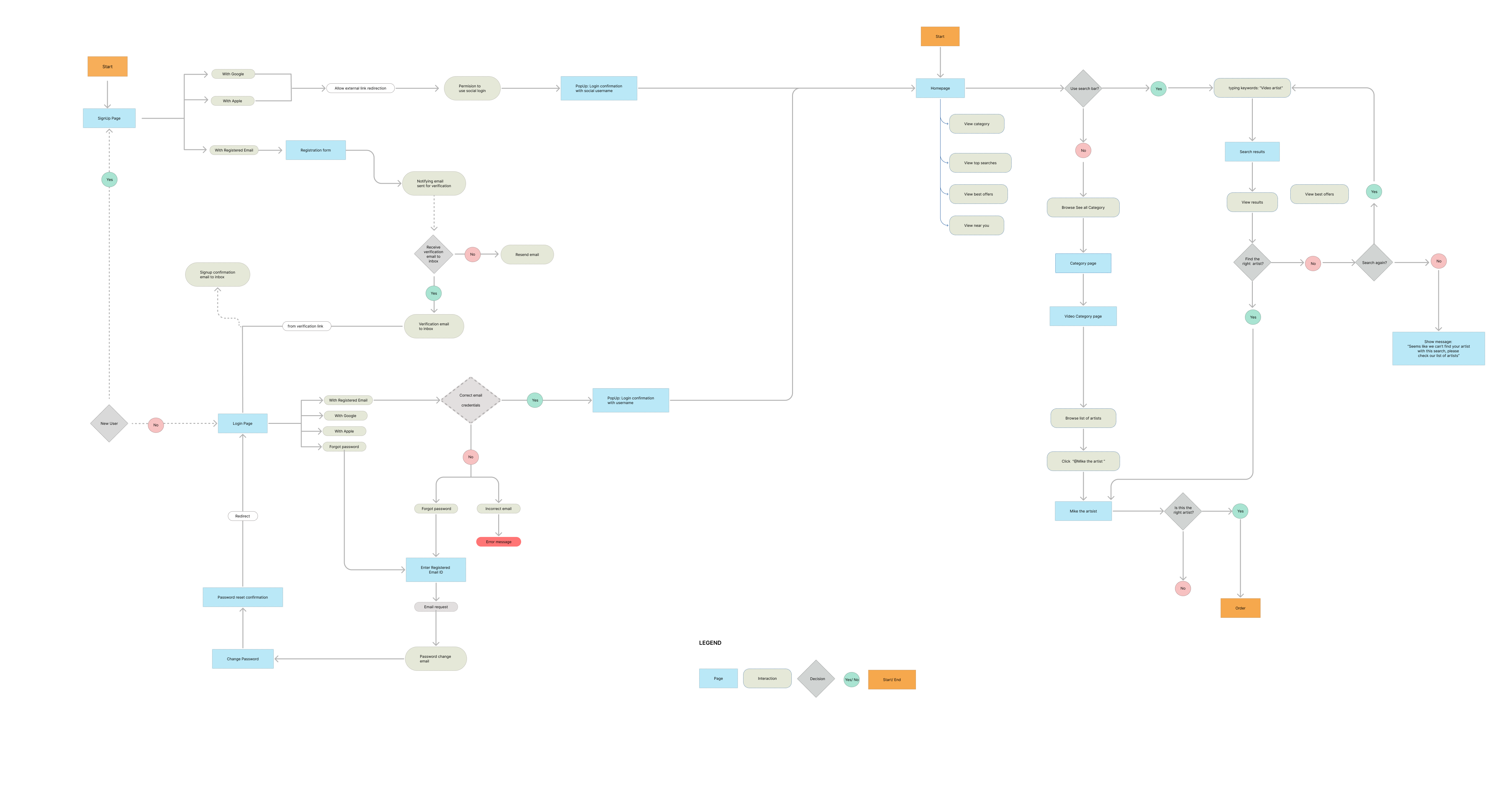 Based on the personas defined, a set of features was created in conjunction with the needs and pain points identified. Further, the features were structured in a user flow diagram to help create a prototype of a minimum viable product.